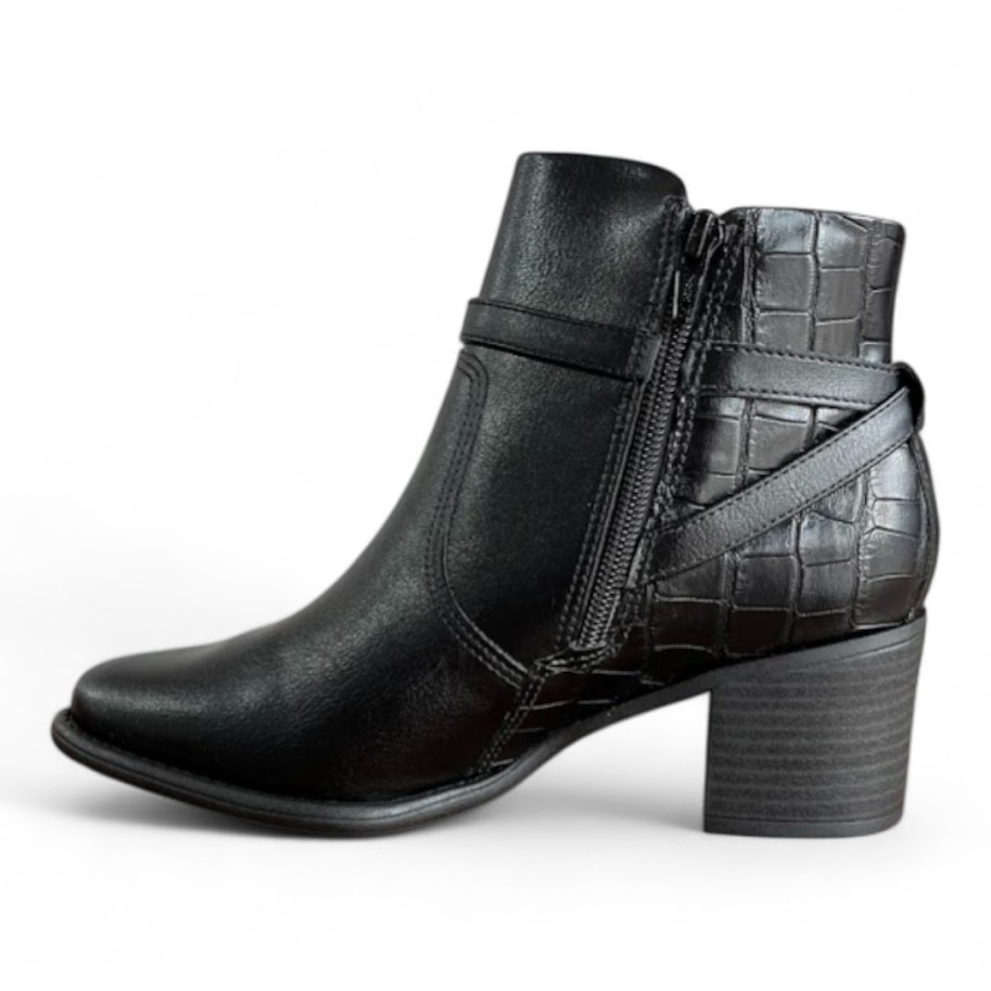 Com cano curto e salto bloco de 5,5 cm, ela oferece estabilidade, segurança e aquele toque de elegância que valoriza qualquer look.