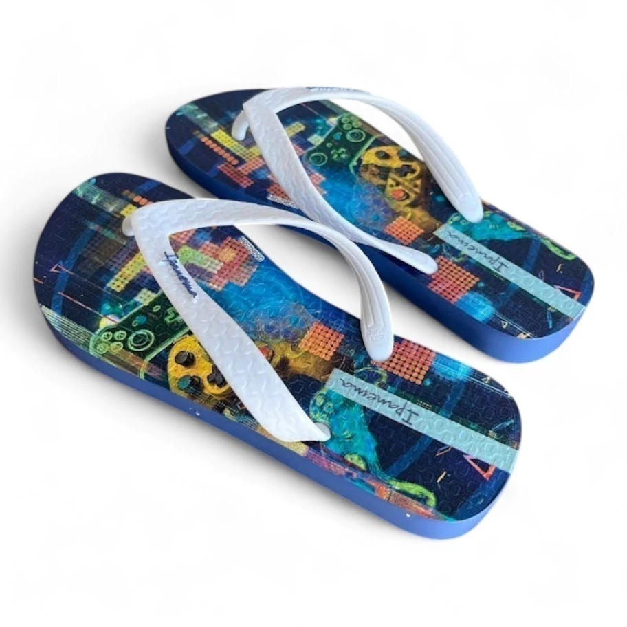 A Ipanema Temas Infantil é a cara do verão, unindo conforto e estilo para momentos inesquecíveis. As estampas divertidas e encantadoras trazem um dinossauro surfista em um clima radical e os adoráveis ursos panda e tigres se divertindo na piscina. Perfeita para deixar o verão ainda mais colorido e animado!